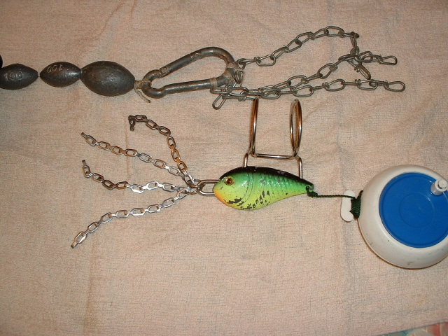 Foarte simplu:iei un inel de chei mai serios,otelit,pe care bagi vreo 3 lanturi cu zaua mai subtire,de 15-20 cm lungime fiecare.Eu am legat un mono de 0.50 de zaua de langa inel a unui lant,dar daca gasesti ceva mai tare/subtire,e si mai bine.In caz de agatatura,tragi firul de la mulineta prin inelul de chei,si ii dai drumul pana la naluca.Eu,in felul asta mi-am salvat o gramada de naluci pana acum.Am avut si eu facut cu carabina,dar era greutate prea mare pentru a aluneca pana la naluca.alec scrie: Deci merge pe incercate...cu prima ocazie imi confectzionez unul sa vad cum merge...desi normal sper sa nu fie nevoie prea des